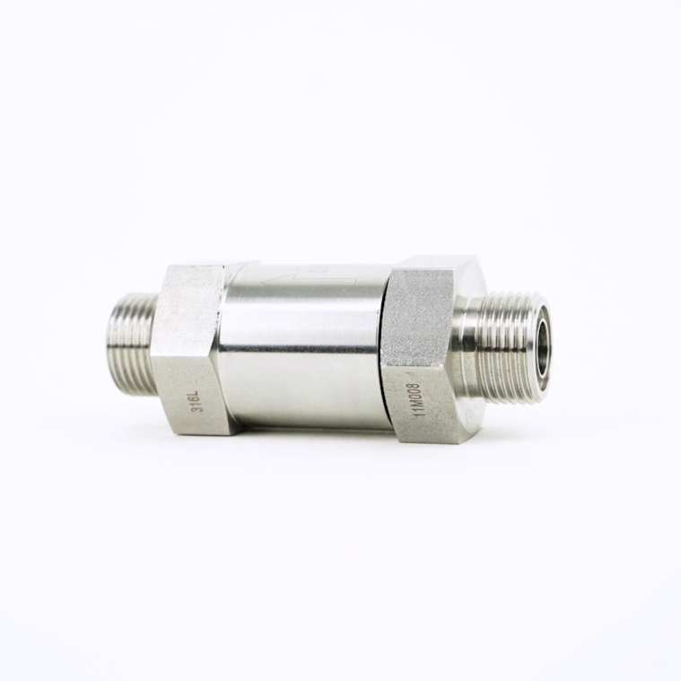 單向閥采用彈性密封,密封材料耐低溫至-40℃,密封效果好,適用于35/70Mpa氫氣系統(tǒng)。連接方式有卡套和ORFS接口可選。