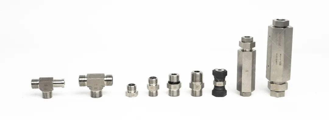 鋼管選用精密冷拔/冷軋不銹鋼光亮管,內(nèi)外表面均為光亮態(tài),整個氫氣管路系統(tǒng)安裝過程簡單,一把扭矩扳手即可解決,不需要數(shù)圈數(shù),適合批量化安裝。ORFS 90°翻邊工藝,密封圈軟密封,更加抗震。