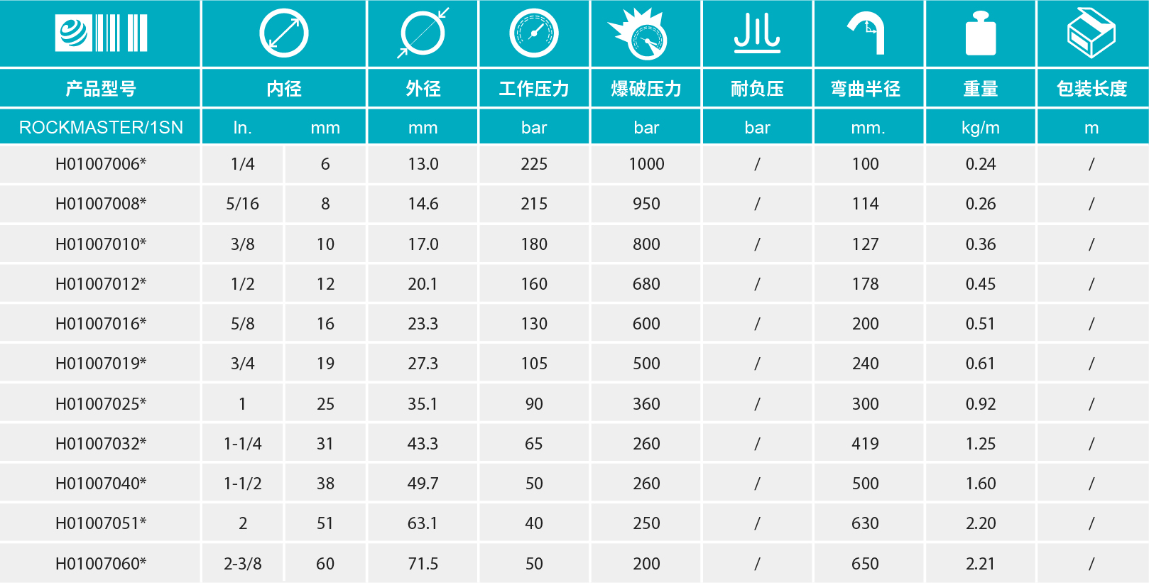 - 中低壓管路,回油管路,適用于嚴苛環(huán)境條件,適用于安裝在摩擦劇烈部位,適用于海洋環(huán)境,地下或露天采礦場所。
