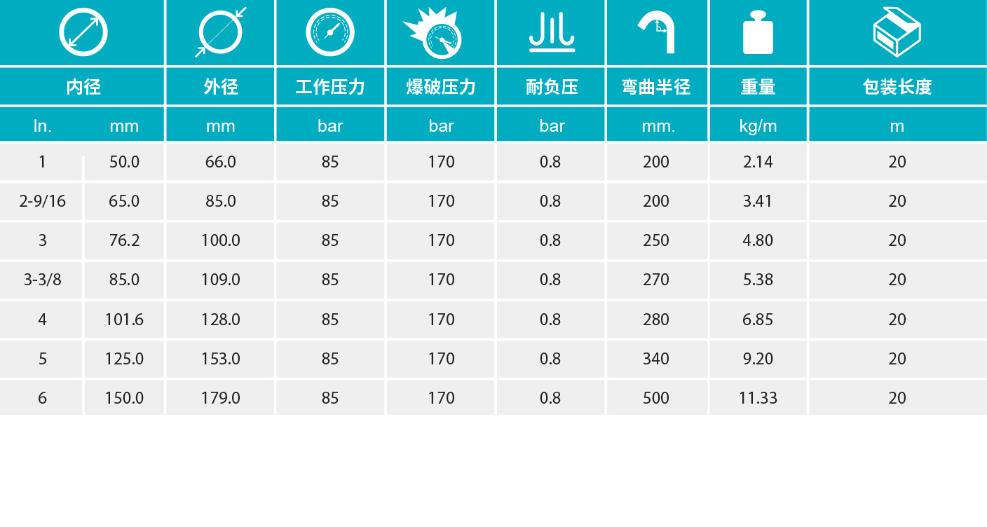 【增強層】ID=50mm 2層鋼絲纏繞,其他尺寸均為4層鋼絲纏繞