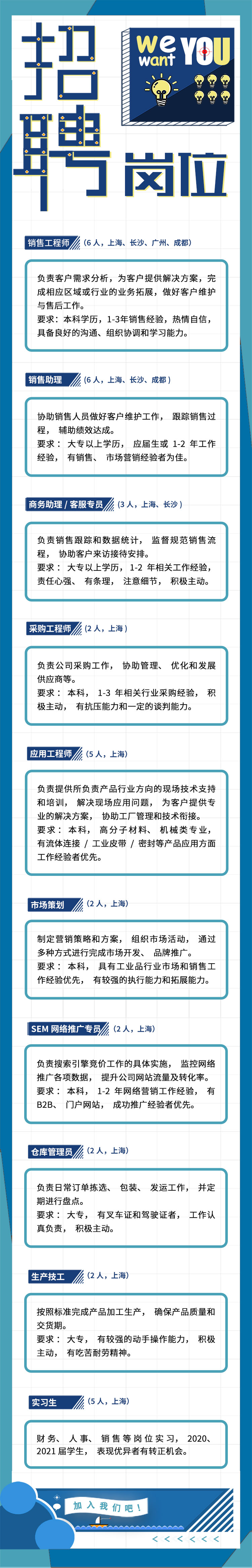 為適應公司的快速發(fā)展,我們誠邀積極進取的您加入到我們這個充滿激情與活力的大家庭中,與我們共謀發(fā)展大計,實現(xiàn)您的職業(yè)理想!
