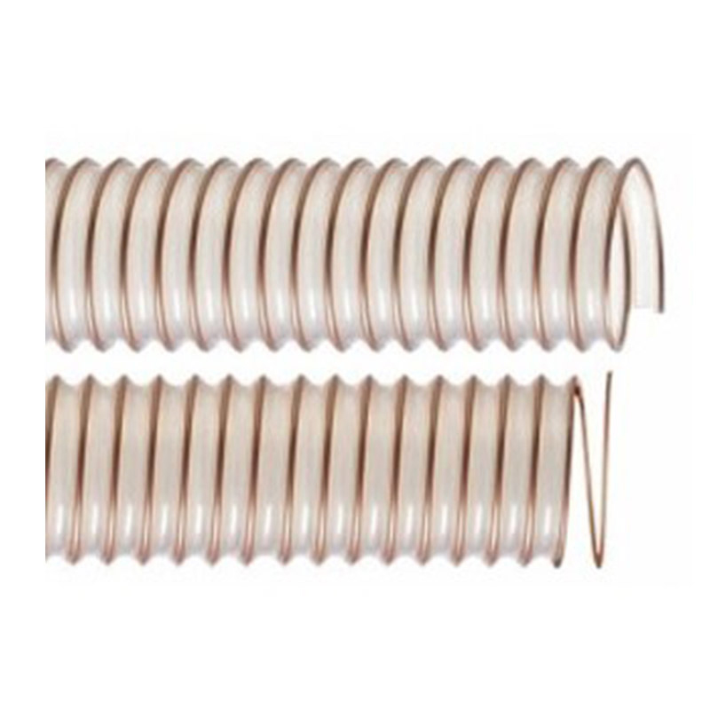 - 半透明PU管壁, 帶鍍銅色包塑鋼絲螺旋加強