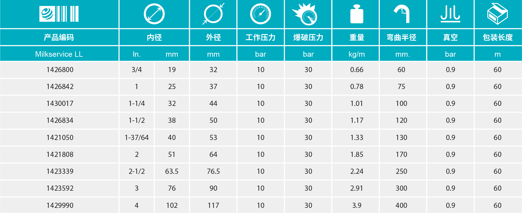 - 硬壁膠管,用于抽吸和輸送牛奶,液態(tài)奶制品以及140°C 的熱氣 ,不含塑化劑。