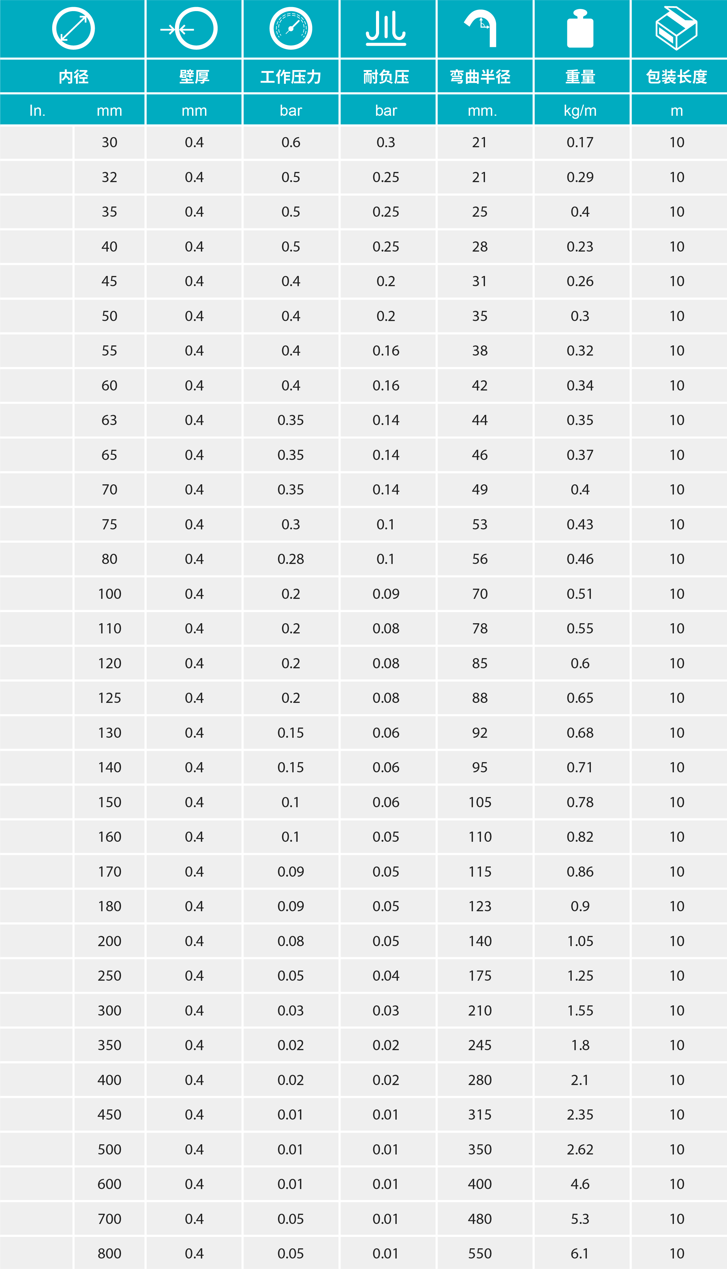 質極輕且極其柔軟,具有良好的可壓縮性,內(nèi)壁平滑以保證物料在管內(nèi)流動順暢
