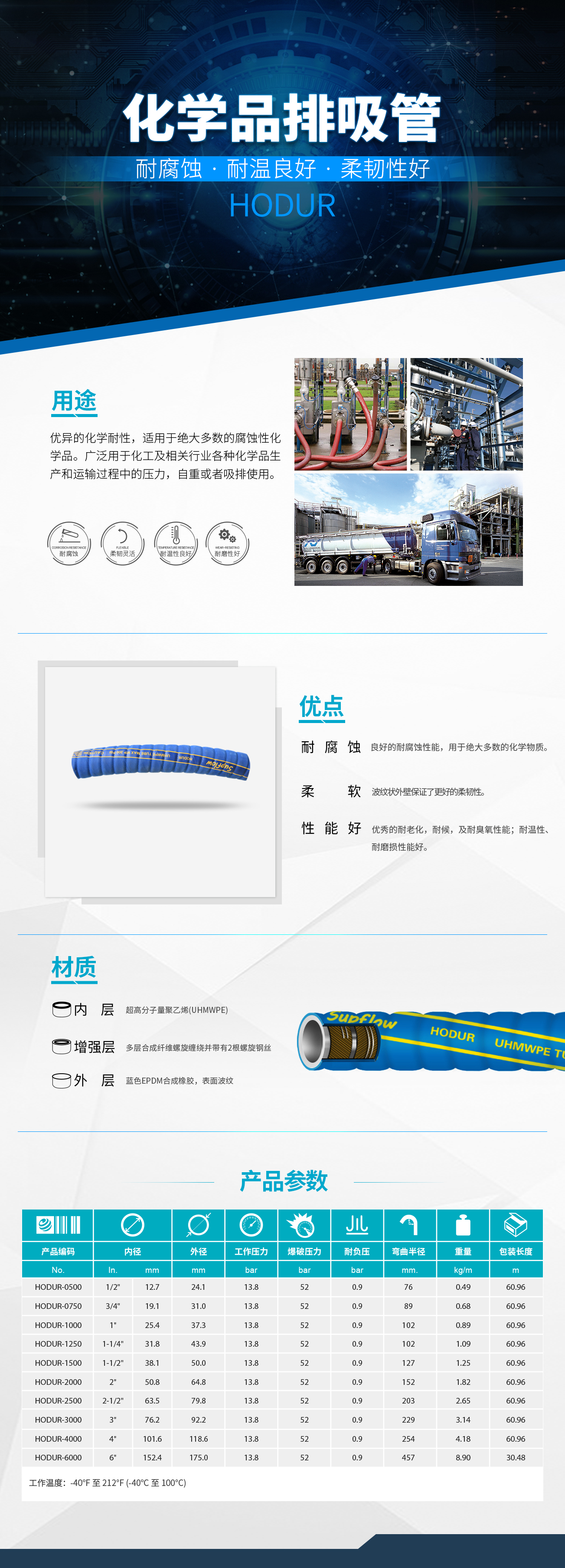 - 優(yōu)異的化學(xué)耐性,適用于絕大多數(shù)的腐蝕性化學(xué)品。廣泛用于化工、鋰電池、精細(xì)化工、原料藥及相關(guān)行業(yè)各種化學(xué)品生產(chǎn)和運(yùn)輸過程中的壓力,自重或吸排使用。