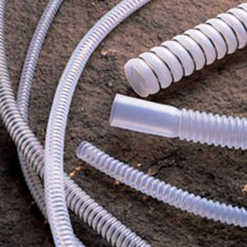 - 半透明特氟龍軟管具有極好的抗化學(xué)性和絕緣性,是優(yōu)異的耐腐蝕軟管 無論外徑有無不銹鋼絲強(qiáng)化都備有庫存 鋼絲強(qiáng)化提供更大的抗壓能力,也能幫助電流接地-防靜電特氟龍軟管 易于彎曲---螺旋結(jié)構(gòu)具有遠(yuǎn)遠(yuǎn)大于直管的彎曲度 螺旋結(jié)構(gòu)易于清潔 由FDA認(rèn)證的材料制成,符合食品級(jí)軟管,衛(wèi)生級(jí)軟管的使用要求 也可訂購軍用MIL-T-81914/1規(guī)格(僅限無鋼絲強(qiáng)化)