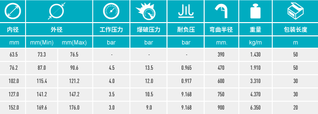 • 可根據(jù)需求提供抗靜電帶銅線(嵌于增強(qiáng)層)版本,以保證軟管外壁仍能更好地滿足耐磨性要求
