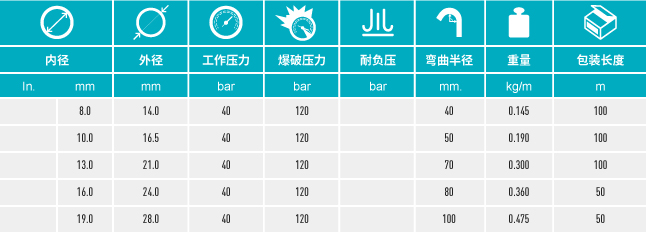 適用于農(nóng)業(yè)中,輸送高壓力殺菌劑溶液以及含礦物油的其他農(nóng)業(yè)噴灑液。