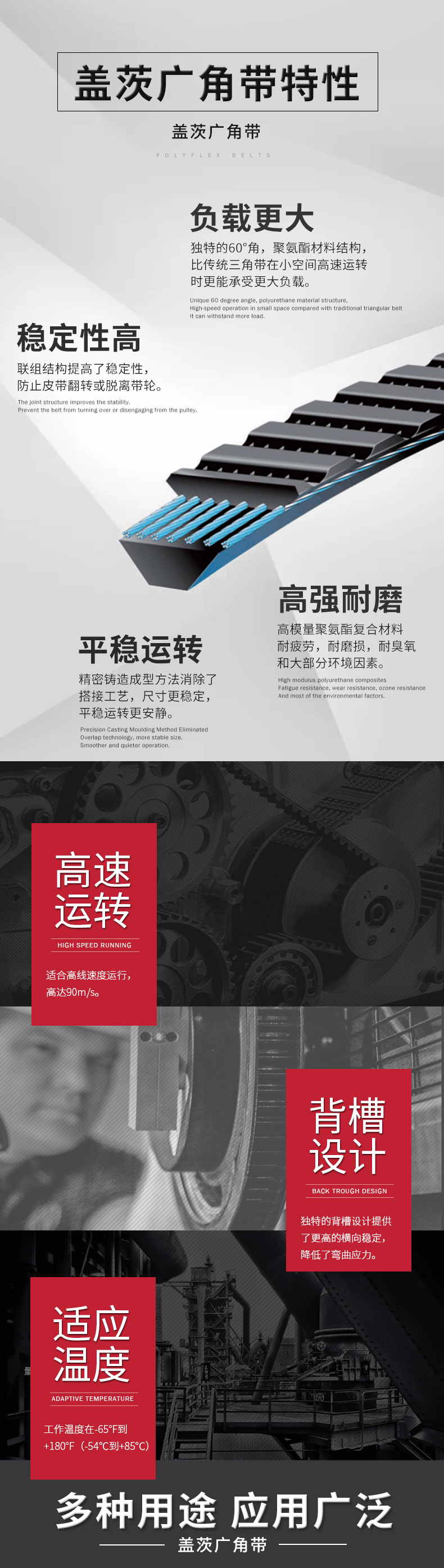 可以選擇不同的齒形、線繩和各種類型的背襯,也有滿足FDA和USDA的產(chǎn)品。