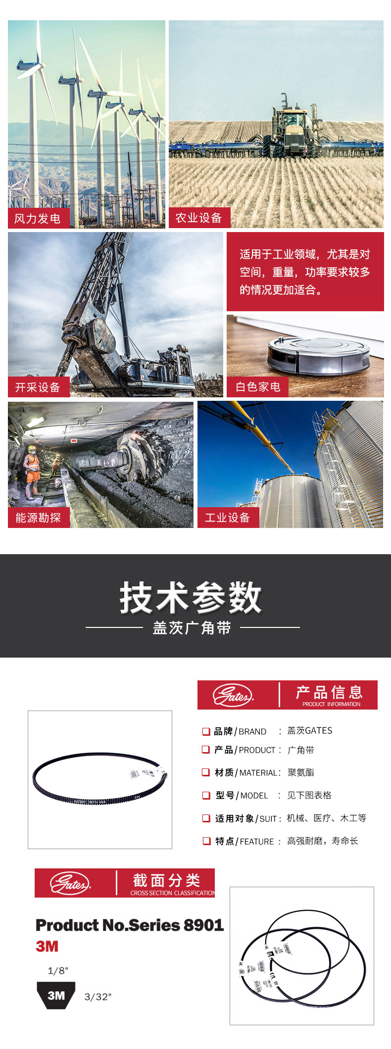 蓋茨GATES 聚氨酯廣角帶 傳動帶 3M630