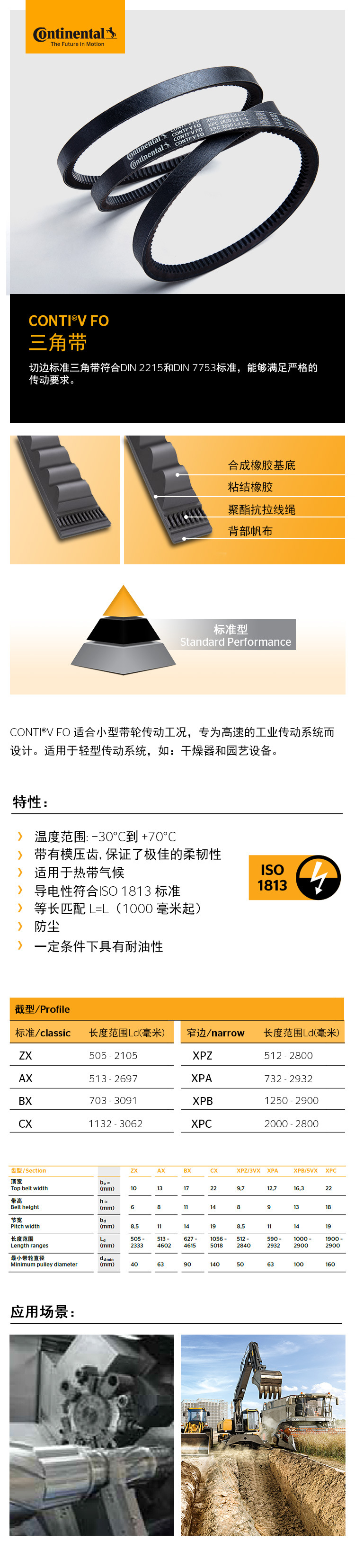 - 切邊標準三角帶符合DIN 2215和DIN 7753標準,能夠滿足嚴格的傳動要求,CONTI V FO 適合小型帶輪傳動工況,專為告訴的工業(yè)傳動系統(tǒng)而設(shè)計。適用于輕型傳動系統(tǒng),如:干燥器和園藝設(shè)備