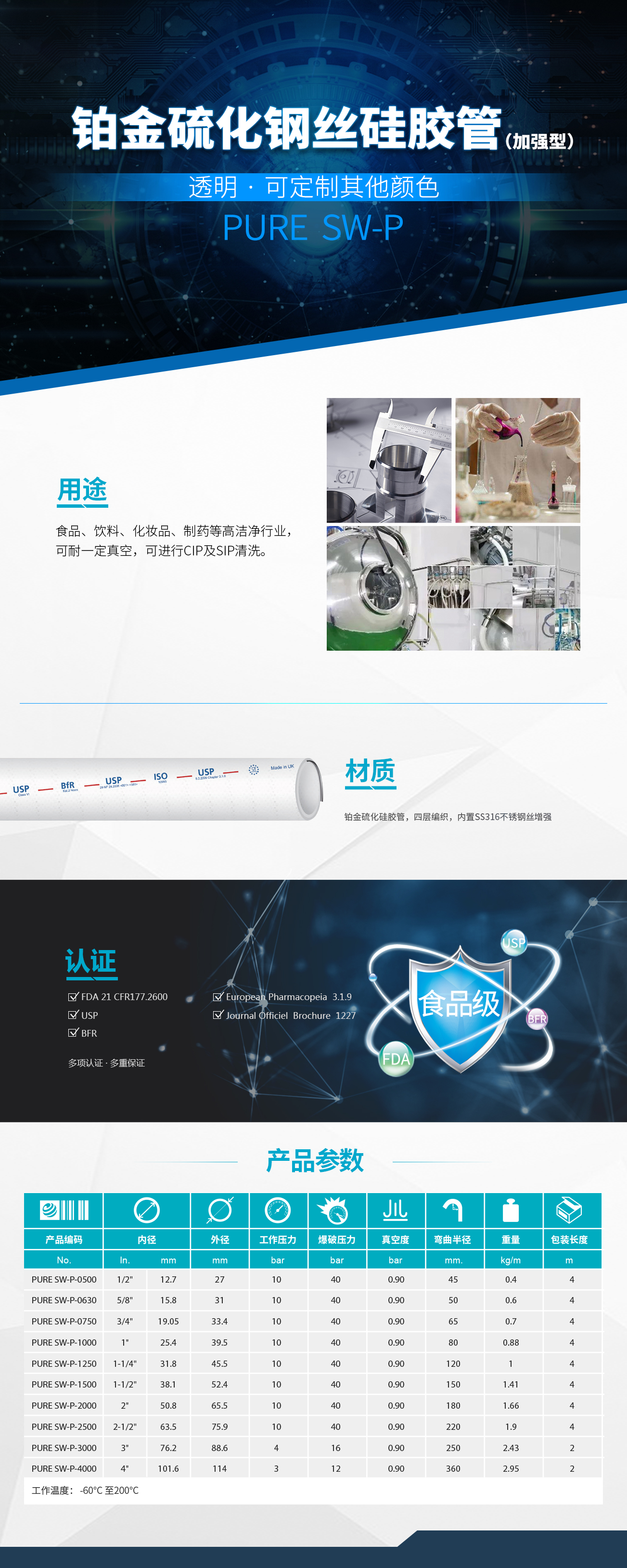 鉑金硫化鋼絲硅膠管-潔凈型 PURE SW-E