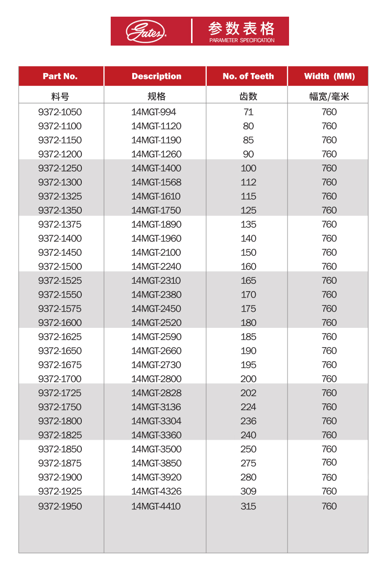 - 蓋茨GATES 保力強(qiáng) Polychain同步帶14MGT-1400