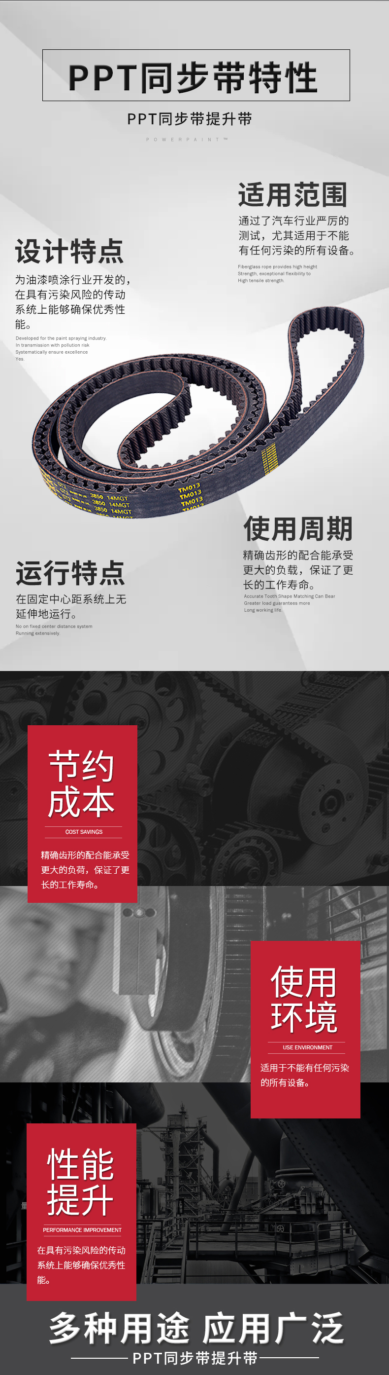 - 為油漆噴涂行業(yè)開發(fā),在具有污染風險的傳動系統(tǒng)上能有較好的性能表現(xiàn)。