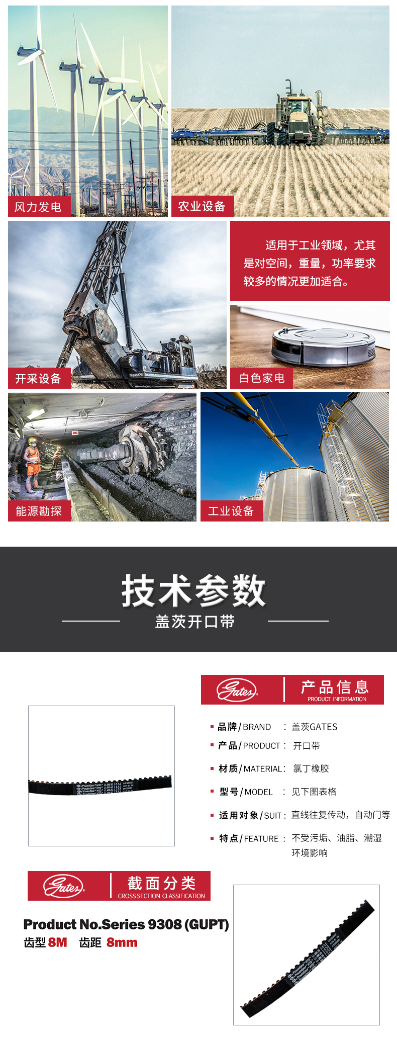 - 蓋茨的齒型結(jié)構(gòu)具有良好的定位傳動(dòng)能力,能夠提高其傳動(dòng)功率,降低運(yùn)行噪音。