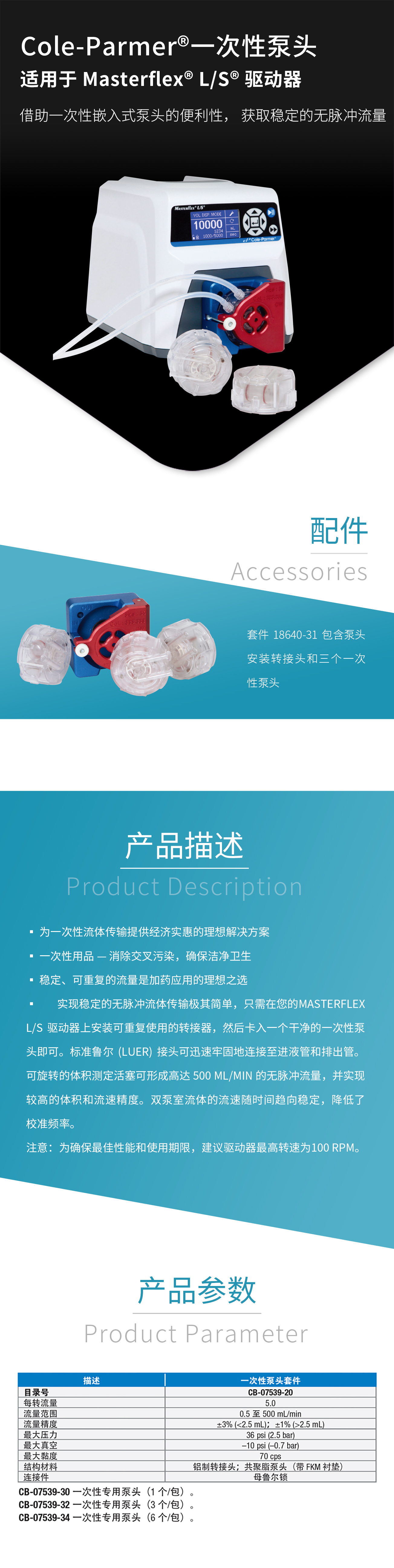 Cole-Parmer 一次性泵頭