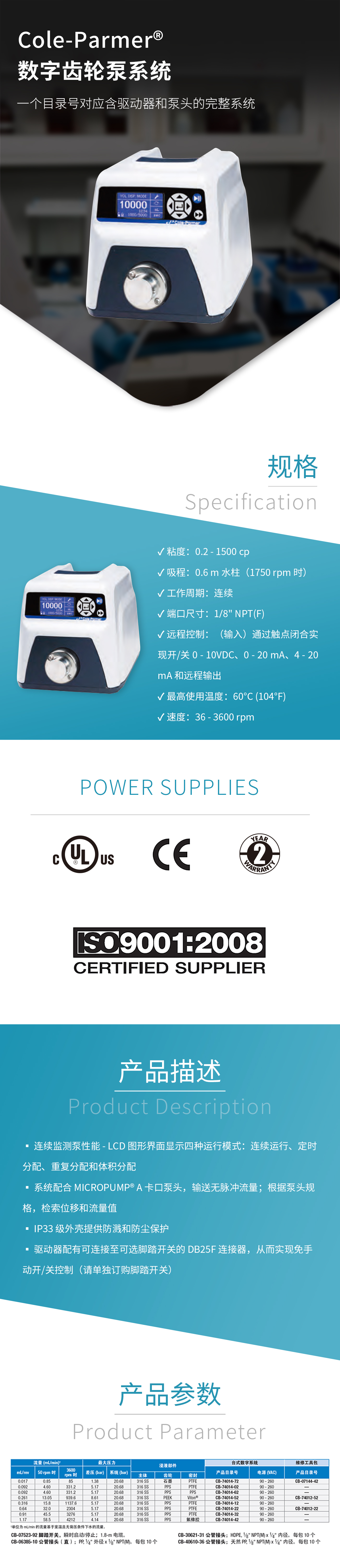 Cole-Parmer 數(shù)字齒輪泵系統(tǒng)