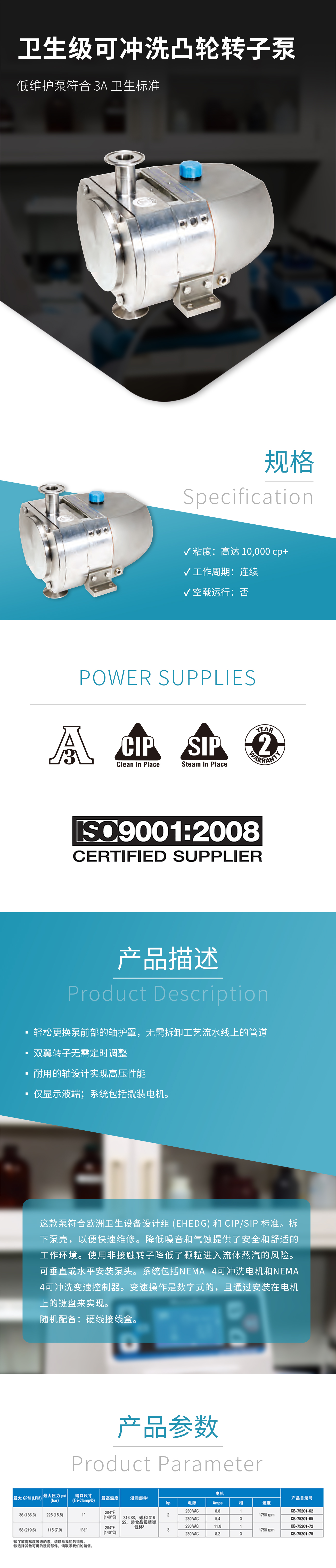 衛(wèi)生級(jí)可沖洗凸輪轉(zhuǎn)子泵