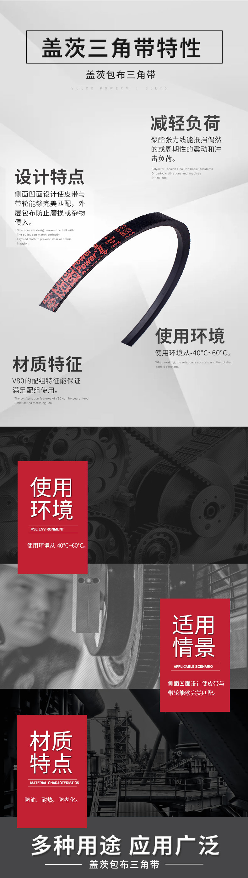 側(cè)面凹面設(shè)計(jì)使皮帶與帶輪能夠更好匹配,外層包布防止磨損或雜物侵入。