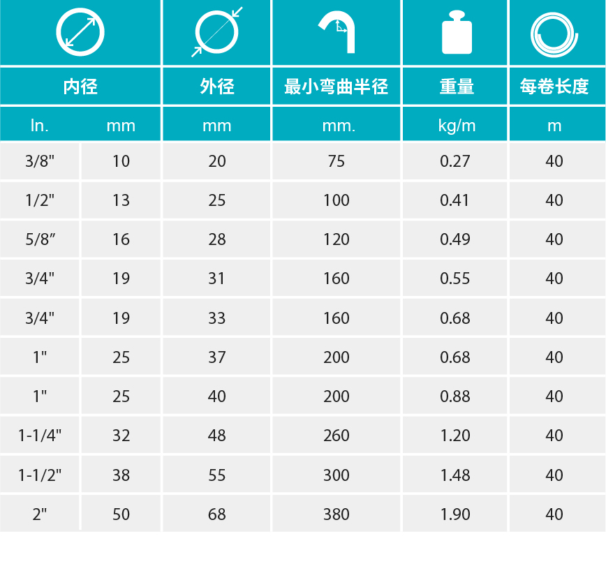 - 【外層】EPDM橡膠 (三元乙丙), 紅色,抗磨損,耐大氣侵蝕,平滑,布狀表面