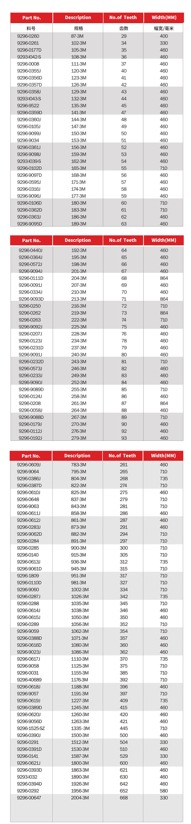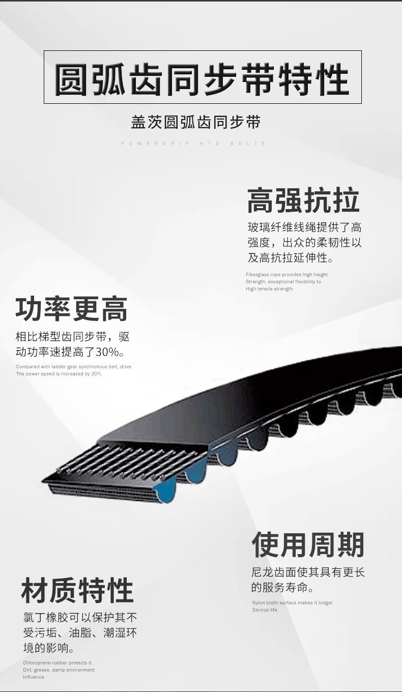 - 相比梯型齒同步帶,驅(qū)動(dòng)功率速提高了約30%。