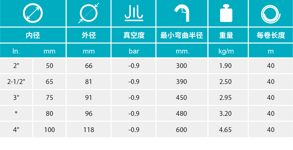 - 特別適用于運送面粉、食糖、咖啡豆、谷物、顆粒產(chǎn)品及其它粉狀產(chǎn)品。 可吸入和輸送用軟管,通常用于工業(yè)加工和輸送應用。