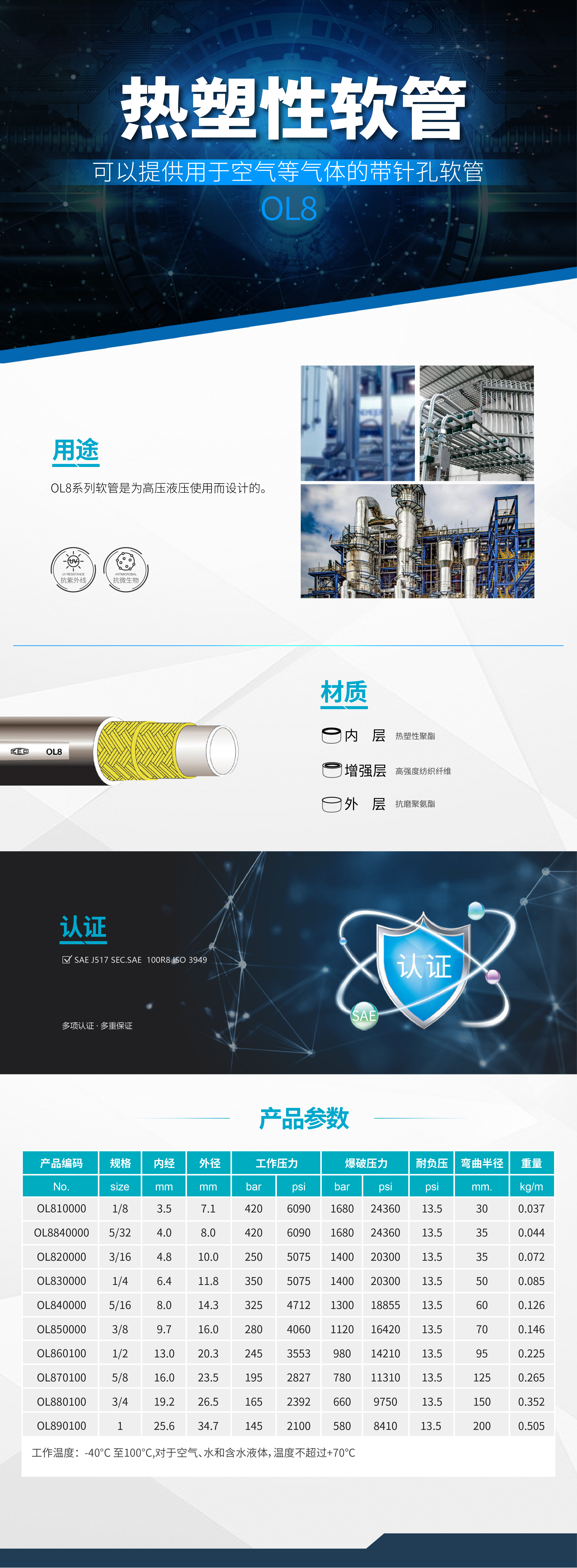 • OL8系列軟管是為高壓液壓使用而設(shè)計(jì)的。