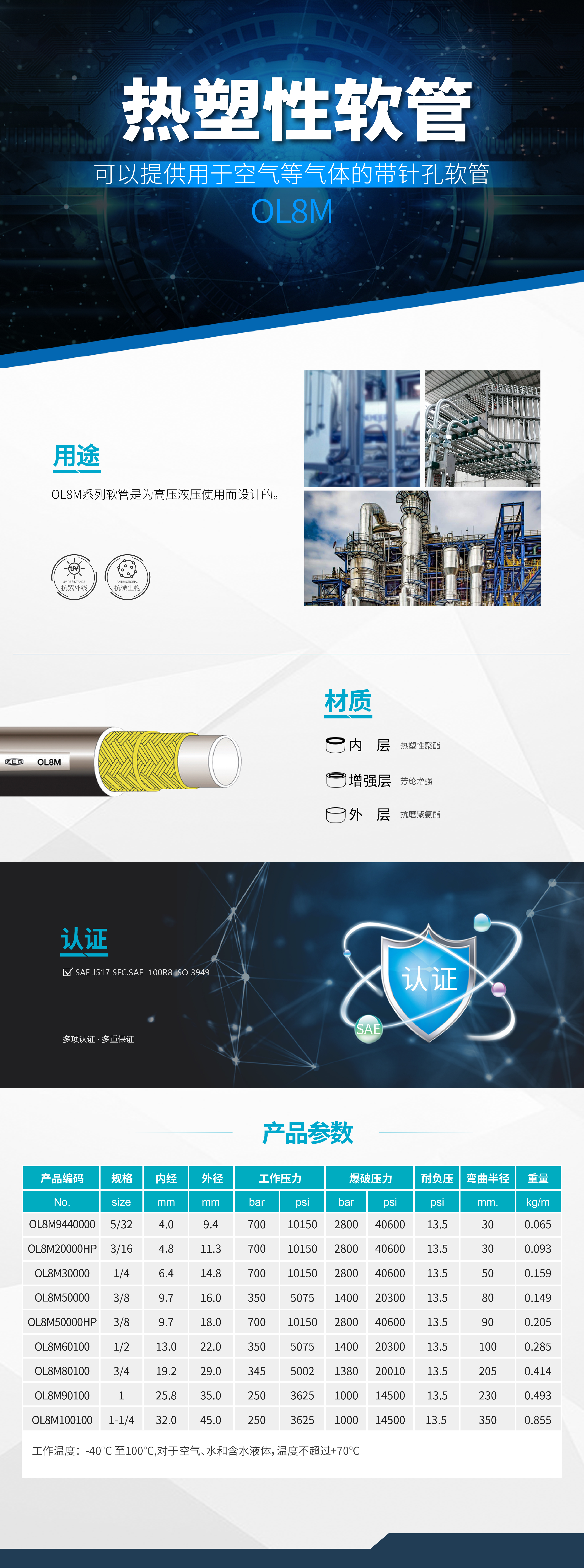 OL8M系列軟管是為高壓液壓使用而設(shè)計(jì)的。