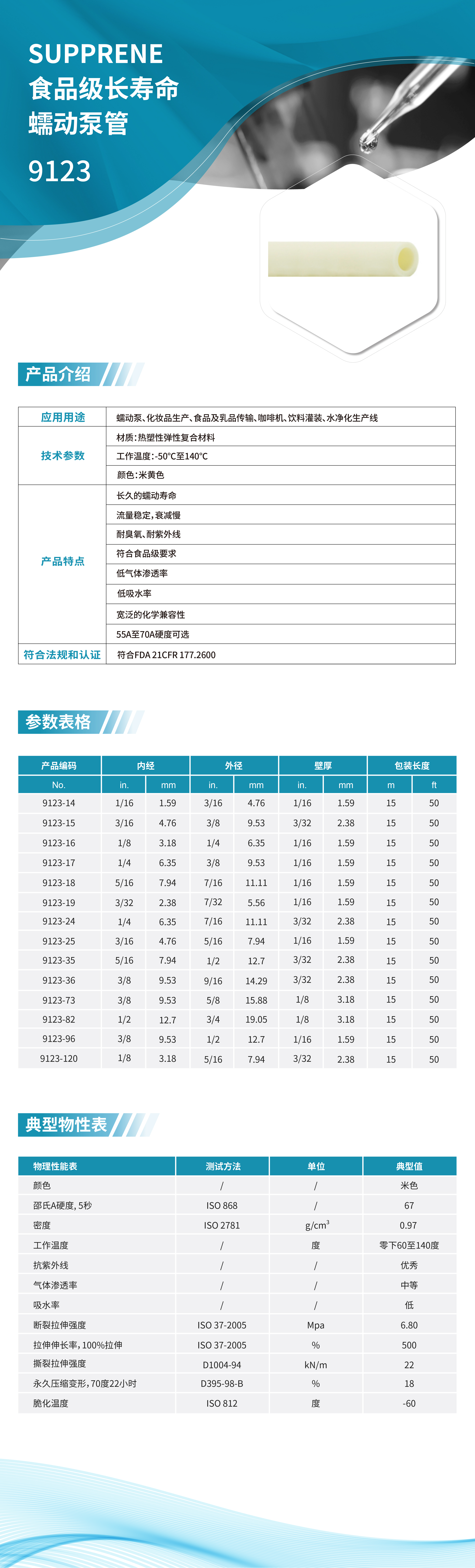 食品級長壽命蠕動泵管 9123