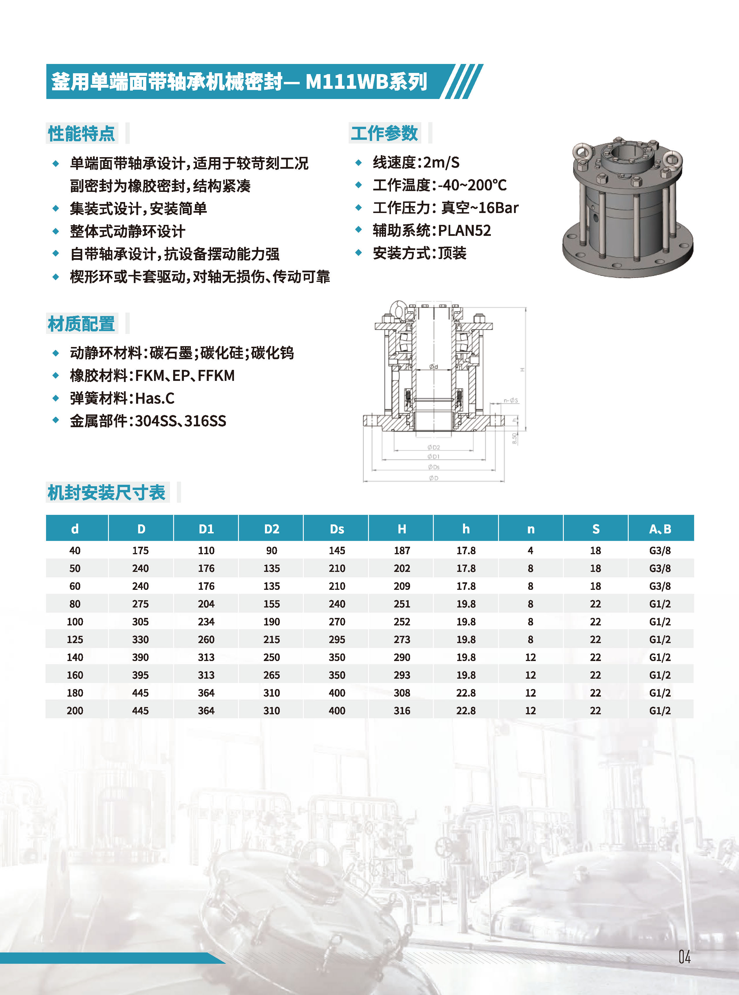 - 釜用單端面帶軸承機封M111WB系列
