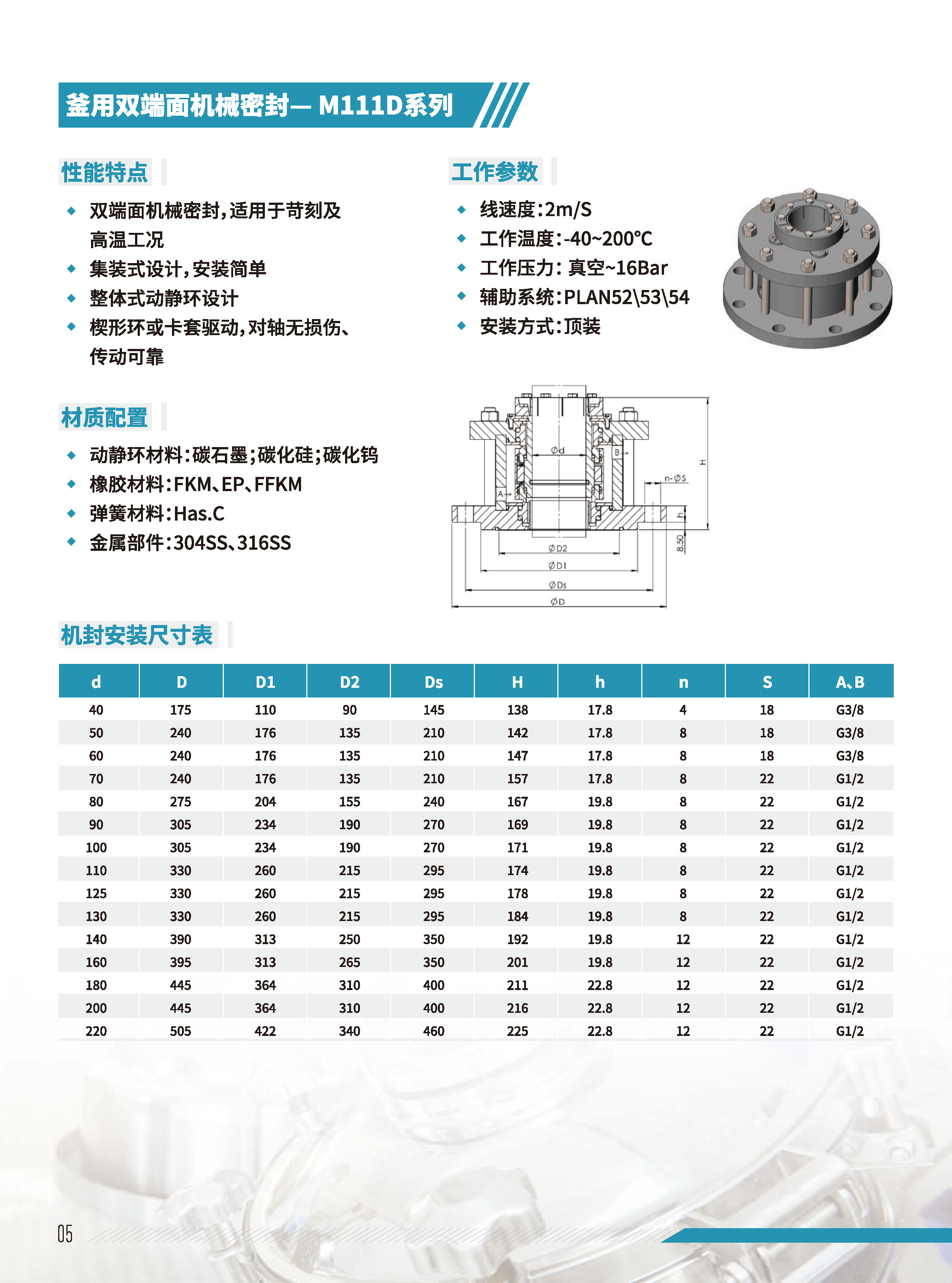 搪玻璃釜用雙端面帶軸承機封MG111B系列