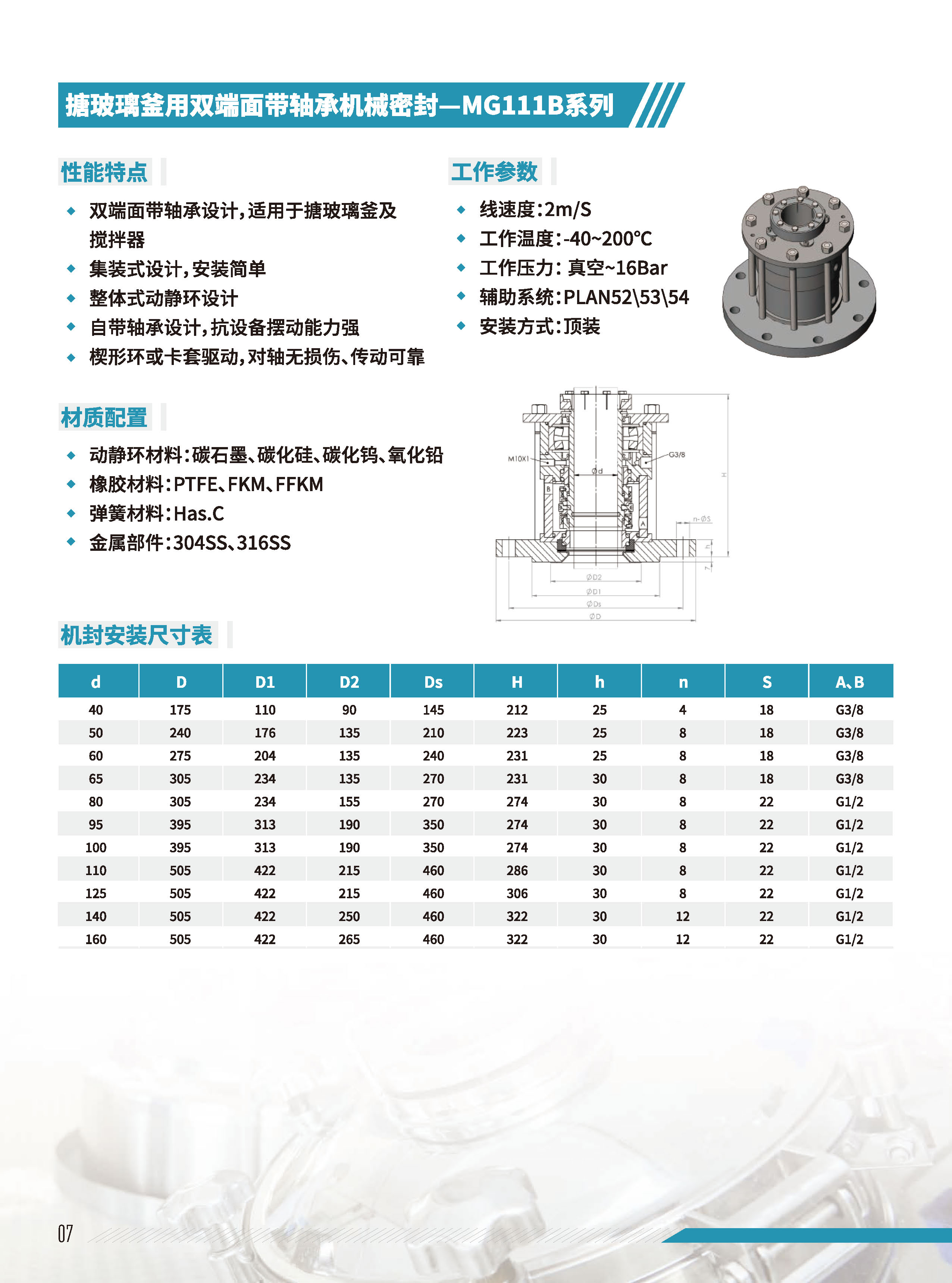 - 搪玻璃釜用雙端面帶軸承機(jī)封MG111B系列