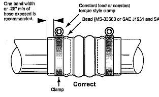正確的安裝方式 喉箍應按照制造商推薦的扭矩值去安裝,見左一圖。 |