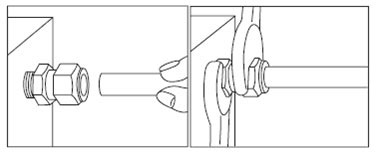 1. 很簡(jiǎn)單地把管子套入配件本體,確保管子末端緊貼本體的凸肩,同時(shí)先用手指稍微扭緊螺帽